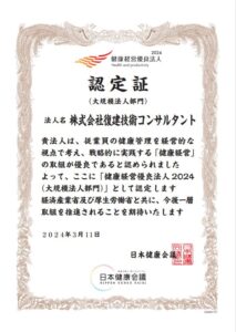 株式会社復建技術コンサルタントは、経済産業省と日本健康会議が主催する「健康経営優良法人2024 大規模法人部門」に認定されました。