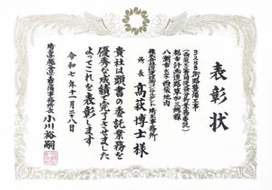 今後とも、この表彰に恥じないように努力してまいりますので宜しくお願い致します。