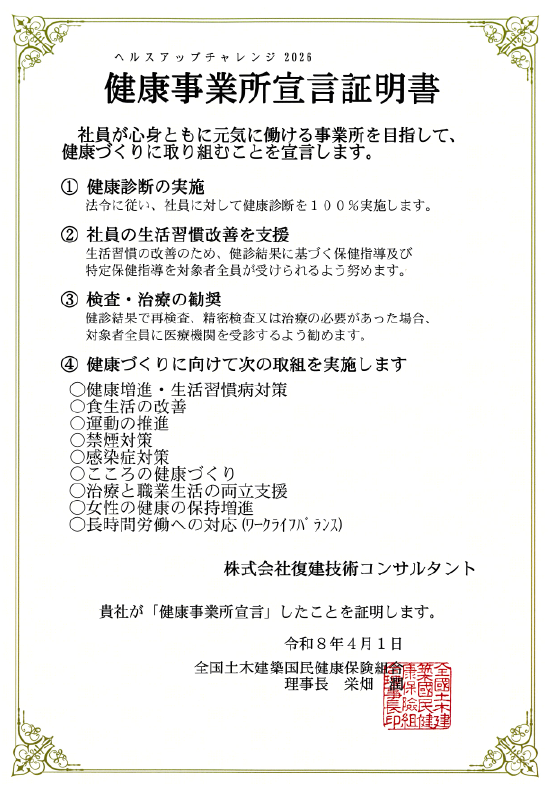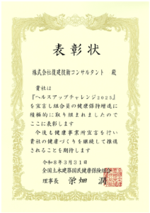 この度、全国土木建築国民健康保険組合より、ヘルスアップチャレンジ2025の取り組みを達成